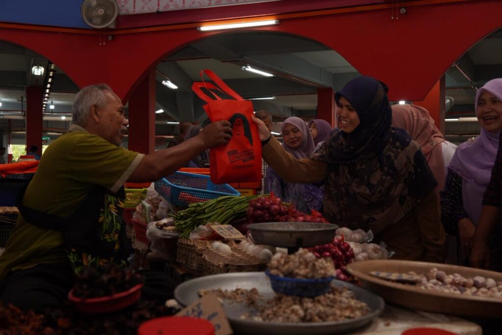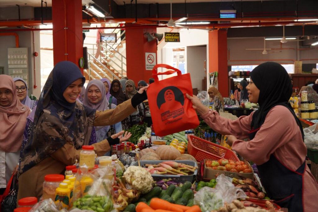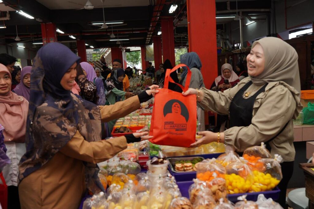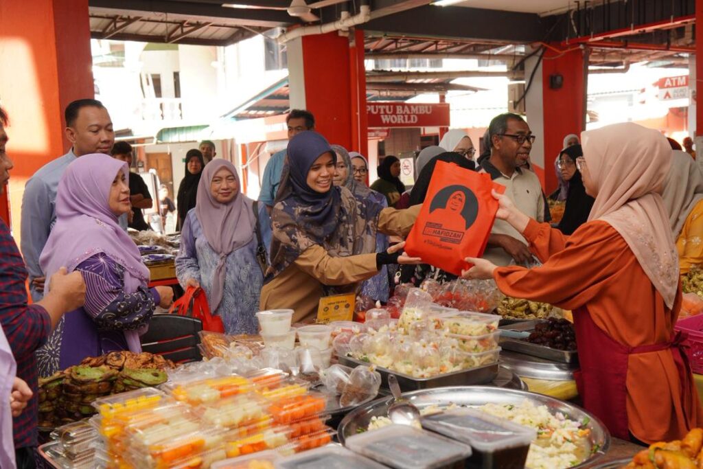 WALKABOUT RAMADAN SANTUNI PENIAGA DAN PENGUNJUNG DI PASAR SITI KHADIJAH BERSAMA YB SENATOR USTAZAH MARHAMAH BINTI ROSLI, TIMBALAN MENTERI DI JABATAN PERDANA MENTERI (HAL EHWAL AGAMA).