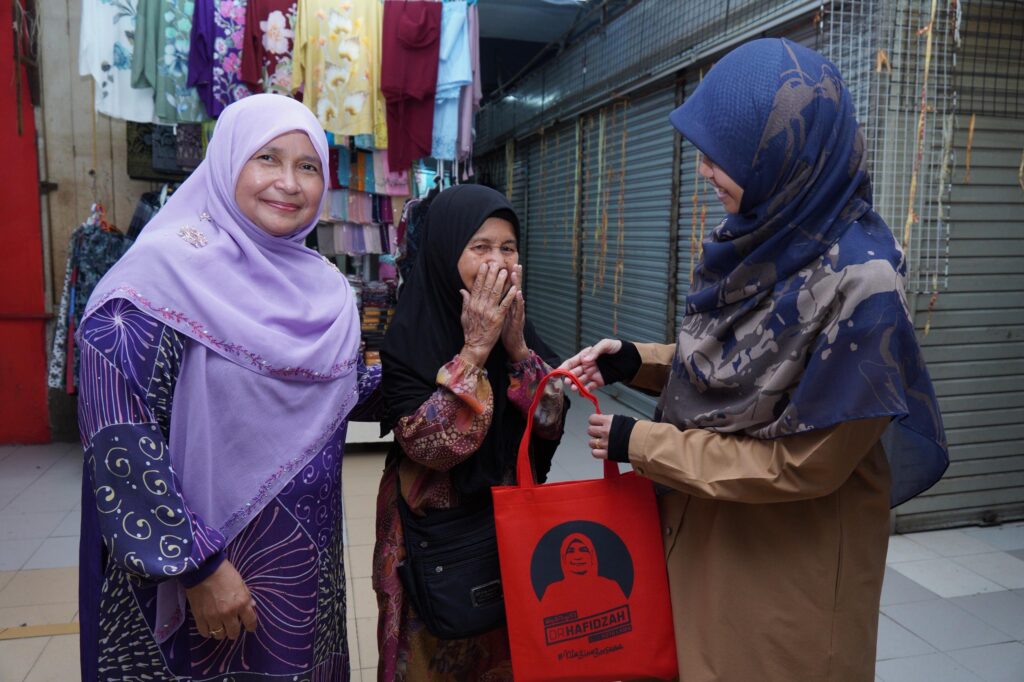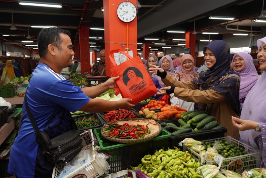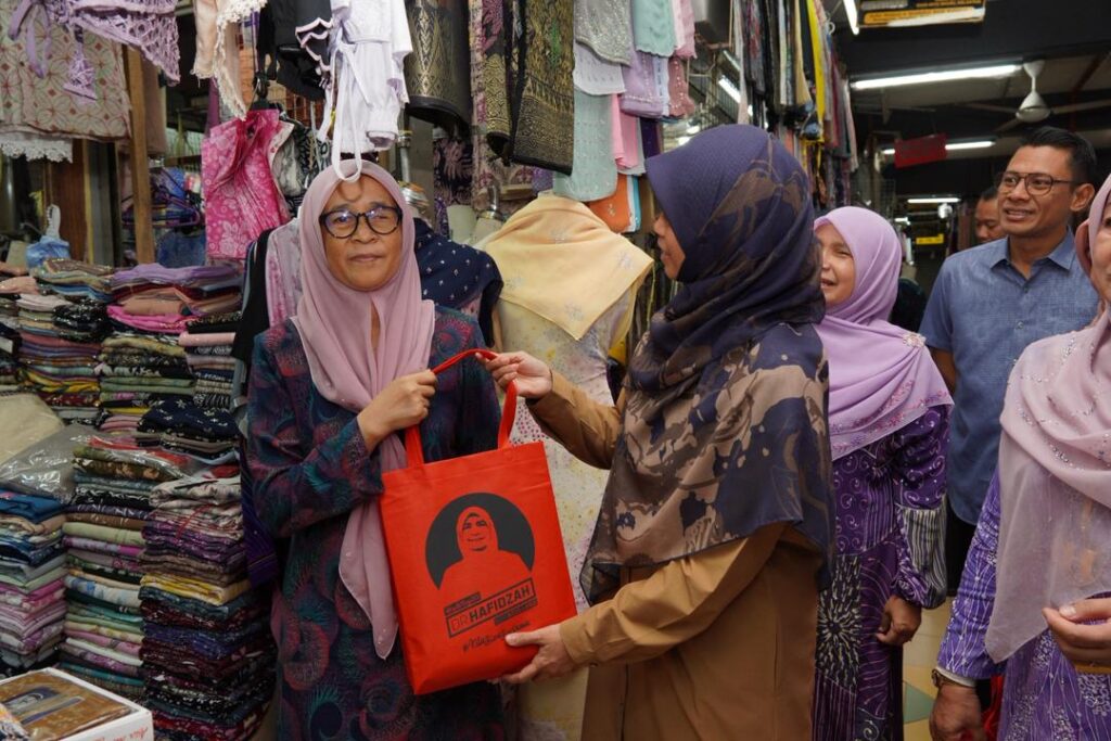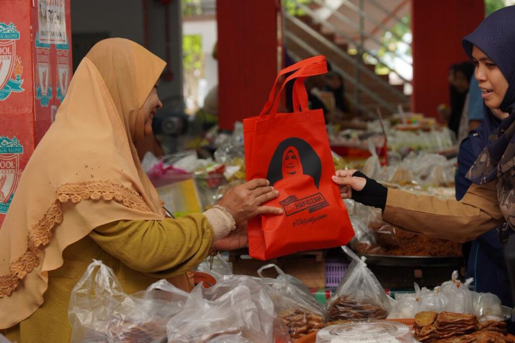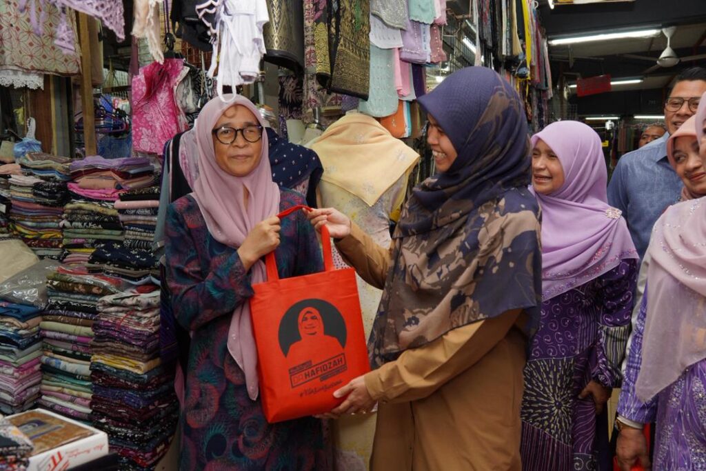 WALKABOUT RAMADAN SANTUNI PENIAGA DAN PENGUNJUNG DI PASAR SITI KHADIJAH BERSAMA YB SENATOR USTAZAH MARHAMAH BINTI ROSLI, TIMBALAN MENTERI DI JABATAN PERDANA MENTERI (HAL EHWAL AGAMA).